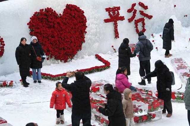 拾级而上,走进京东大峡谷深处,山间仿佛变成了童话中的冰封世界。百米冰瀑从山崖垂落,晶莹剔透,引得游客纷纷拍照。冰雕师用冰雪雕琢出迷宫,孩子们嬉笑着捉迷藏,娇艳的红玫瑰冻在冰块中,是情侣打卡的好选择。